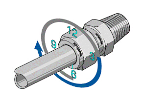 6.在卡套螺母擰緊一又四分之一轉(zhuǎn),它前進(jìn)了1/16inch(1.52mm),接頭完成了密封,抱緊管子的作用。